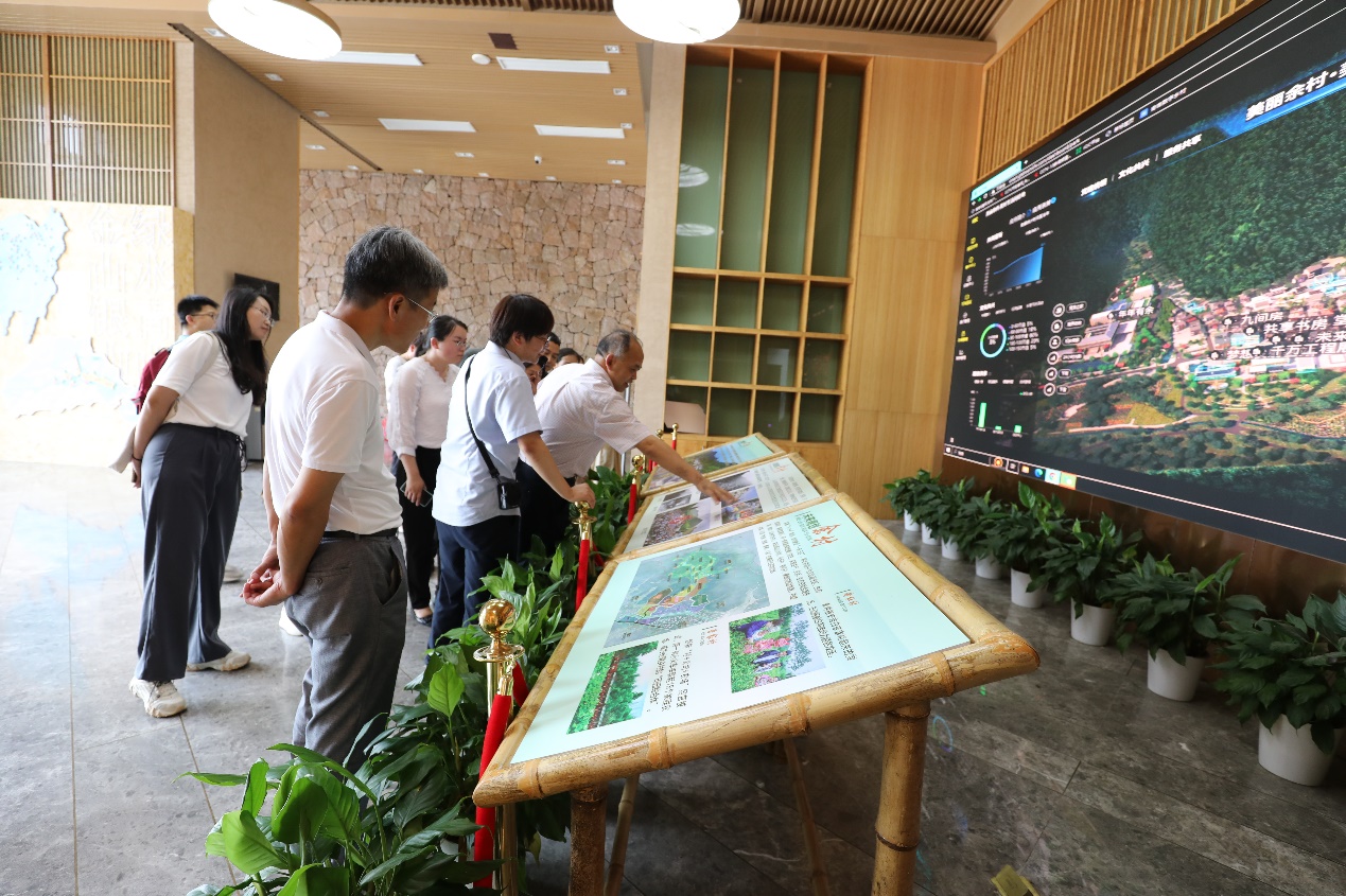 在安吉余村,全体党员循着习近平总书记考察余村的足迹参观了余村文化馆,深入了解了余村的发展历程、风土人情、生态经济发展及未来建设规划。支部党员在文化礼堂认真观看了“绿水青山就是金山银山”理念诞生专题纪录片,聆听了余村从以矿为生,到痛定思痛关闭矿山,保护环境、发展绿色经济的历程;余村人将“两山”理念付诸实践,从靠山吃山到养山富山、走生态绿色之路的发展历程;充分将生态环境优势转化为经济优势,把绿水青山蝶变成金山银山的发展历程。